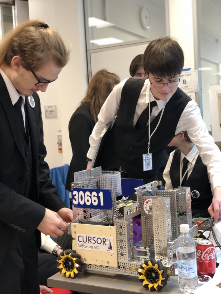 Das FIRST Tech Challenge Team Bluetooth Brothers des Landgraf-Ludwigs-Gymnasiums Gießen war mit großer Begeisterung dabei und schaffte es gemeinsam mit einem Stuttgarter Team als Allianzpartner bis in die Finalrunden.
